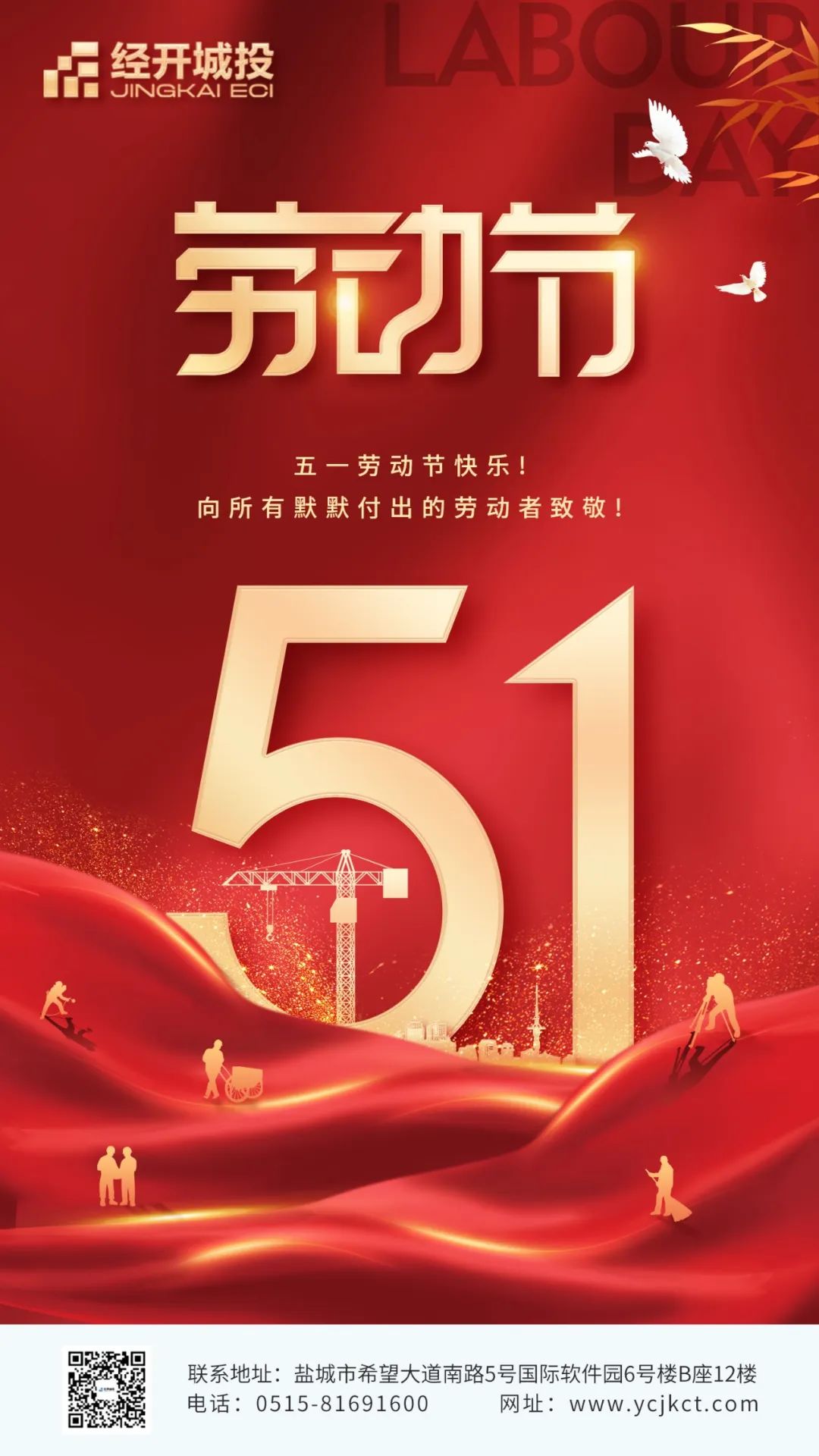 五一國際勞動節(jié)(別名:國際勞動節(jié)、國際示威游行日),是世界上80多個國家的全國性節(jié)日,也是全世界勞動人民共同擁有的節(jié)日。值此節(jié)日,謹(jǐn)向鹽城經(jīng)開城投集團(tuán)全體職工致以親切問候和崇高敬意,祝愿大家節(jié)日快樂!