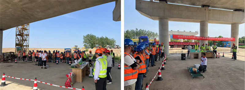 為切實(shí)保障高溫天氣下施工人員的生命健康安全,提升項(xiàng)目應(yīng)對(duì)突發(fā)高溫中暑事件能力,鹽洛高速步鳳互通項(xiàng)目按照2025年“安全生產(chǎn)月”方案要求,開展了高溫防暑應(yīng)急演練活動(dòng)?,F(xiàn)場(chǎng)模擬了一名路基工人因高溫中暑暈倒的場(chǎng)景,現(xiàn)場(chǎng)負(fù)責(zé)人收到信息后迅速響應(yīng),即刻啟動(dòng)高溫中暑現(xiàn)場(chǎng)處置預(yù)案。應(yīng)急救援小組接到通知后,第一時(shí)間攜帶急救設(shè)備和防暑藥品趕赴現(xiàn)場(chǎng),將中暑工人轉(zhuǎn)移至陰涼通風(fēng)處,松解衣物散熱,并通過濕毛巾冷敷、喂服藿香正氣水等措施緊急救治。同時(shí),現(xiàn)場(chǎng)疏散小組迅速組織其他施工人員有序撤離至安全區(qū)域,避免因慌亂造成二次事故。在各小組緊密配合下,演練取得圓滿成功。演練后還邀請(qǐng)鹽城市紅十字會(huì)相關(guān)人員對(duì)項(xiàng)目參建人員進(jìn)行了高溫中暑處置培訓(xùn),切實(shí)提高項(xiàng)目人員的處置能力和處置規(guī)范性。