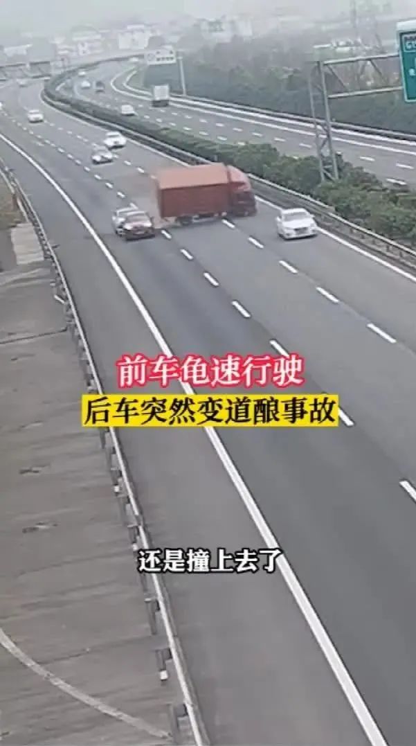 在超車道、主干道上開“龜速車”會影響其他車輛的通行,易引發(fā)多車連環(huán)追尾事故。
