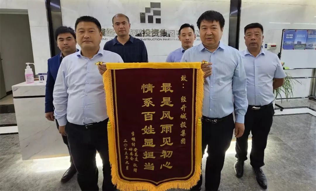 10月7日,步鳳鎮(zhèn)副鎮(zhèn)長(zhǎng)李軍一行人送來(lái)錦旗,為鹽城經(jīng)開(kāi)城投集團(tuán)在仁智村、李壩村雷暴大風(fēng)天氣災(zāi)后恢復(fù)重建工作中的全力支持與幫助表示衷心感謝。
